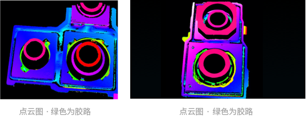 通過3D面陣採(cǎi)集點雲圖獲得被檢測(cè)目标模組能明顯的呈現膠路